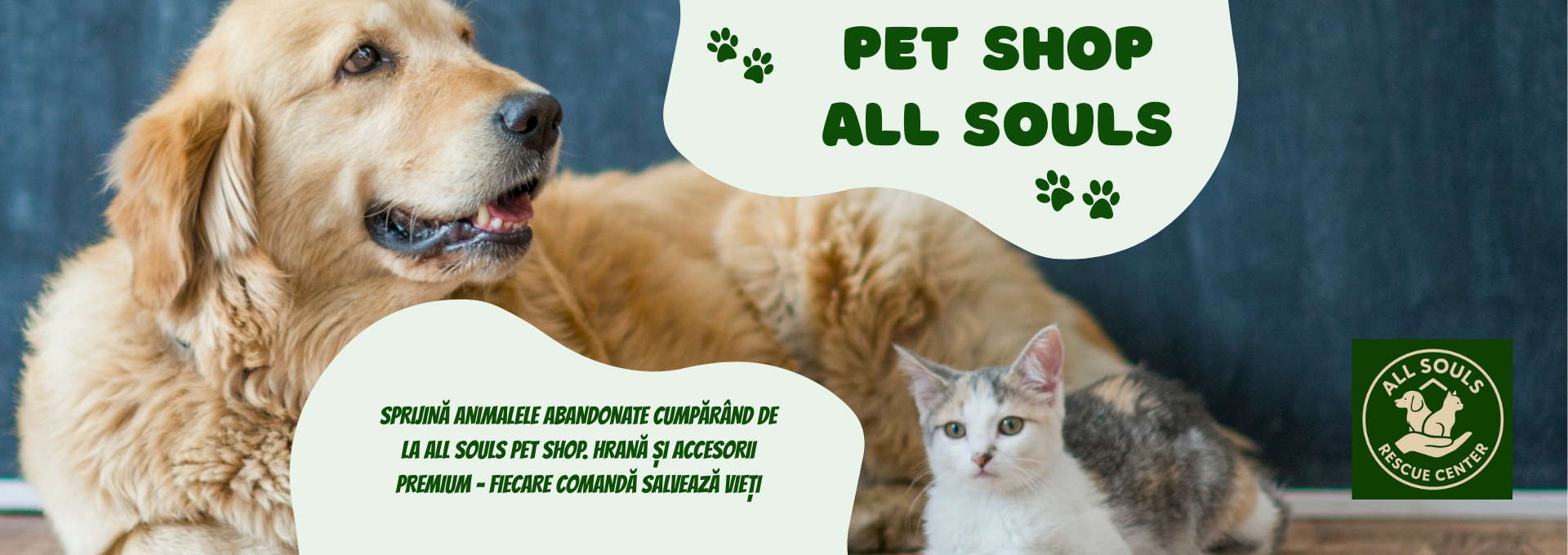 Sprijină animalele abandonate cumpărând de la All Souls Shop. Hrană și accesorii premium – fiecare comandă salvează vieți.